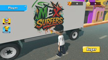 Mex Surfers es un juego endless runner desarrollado en Unity, inspirado en los grandes clásicos del género, pero con una identidad 100% mexicana que lo hace único. Atraviesa coloridas calles, llenas de vida y detalles, mientras corres sin parar esquivando obstáculos, saltando, deslizándote y reaccionando rápido para no perder.
